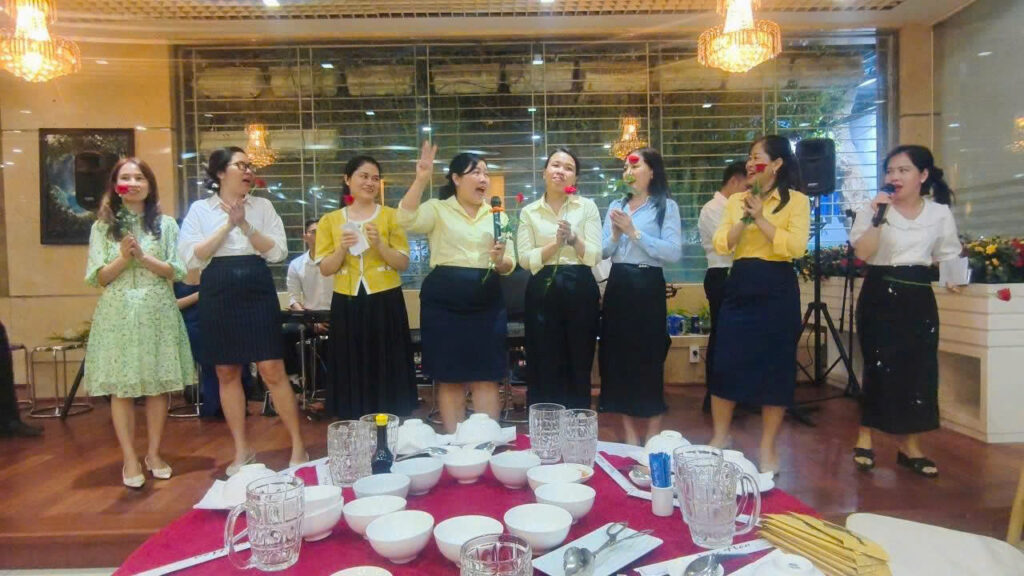 Chương trình thêm phần rộn ràng với các tiết mục văn nghệ được thể hiện bởi chính các chị em Hoàng Quân. Những giai điệu tươi vui, những điệu múa duyên dáng cùng nụ cười rạng rỡ đã tạo nên bầu không khí ấm áp, gần gũi và tràn đầy cảm xúc.Đặc biệt, Ban Lãnh đạo Tập đoàn cũng đã mang đến màn biểu diễn bất ngờ, như một lời chúc mừng và tri ân chân thành gửi đến toàn thể phái đẹp Hoàng Quân – những bông hoa đẹp góp phần làm nên sức sống và bản sắc riêng của đại gia đình Hoàng Quân.